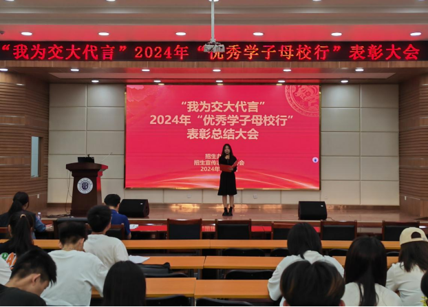 为进一步宣传我校办学成就与人才培养特色,提高学校知名度和社会影响力,促进我校与各生源中学间的深入交流合作。2024年初,招生就业处组织开展了“我为交大代言”招生宣传暨寒假优秀学子回访高中母校活动,并于6月2日在二教报告厅举行表彰总结大会。