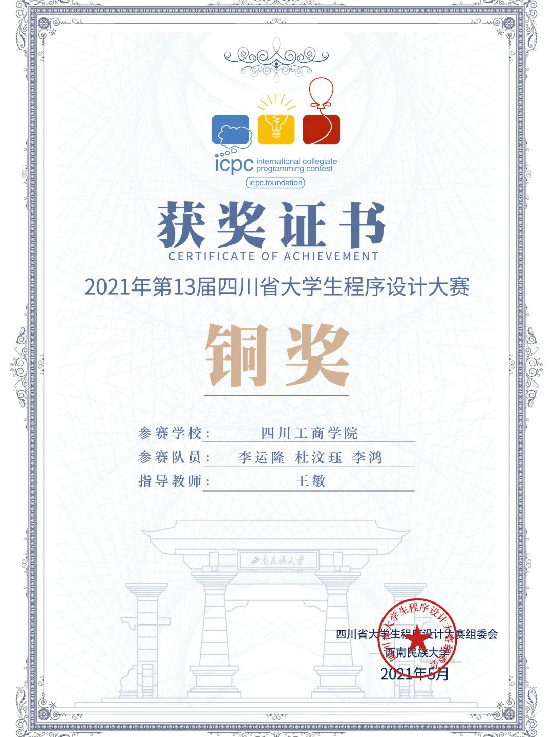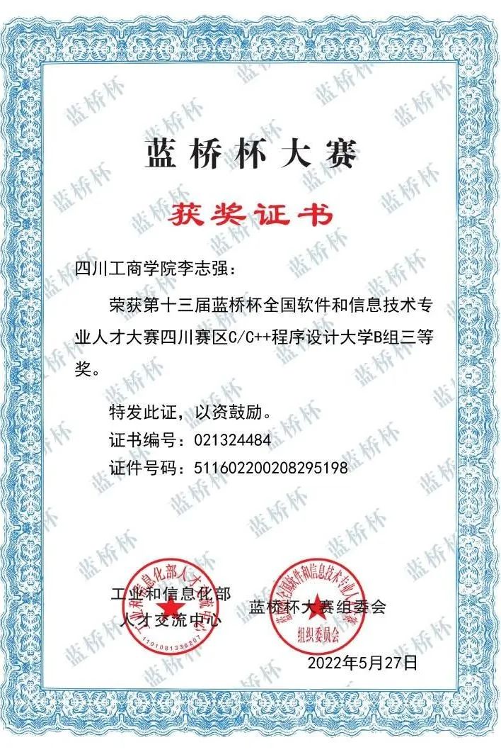左右滑动查看蓝桥杯及ACM获奖(部分)图集