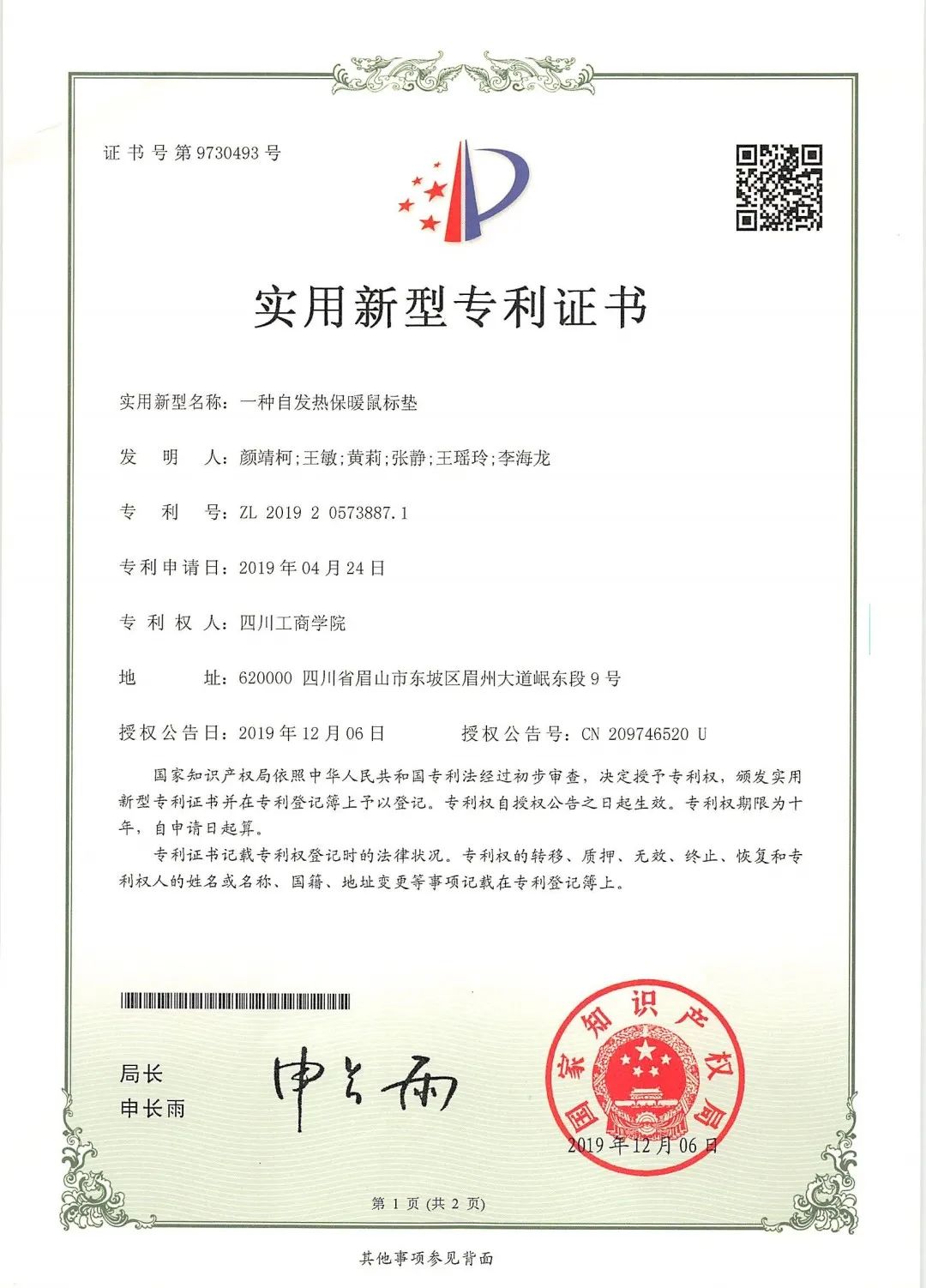 一审一校: 张航旗 、李良涛、房昊