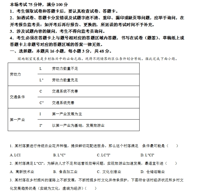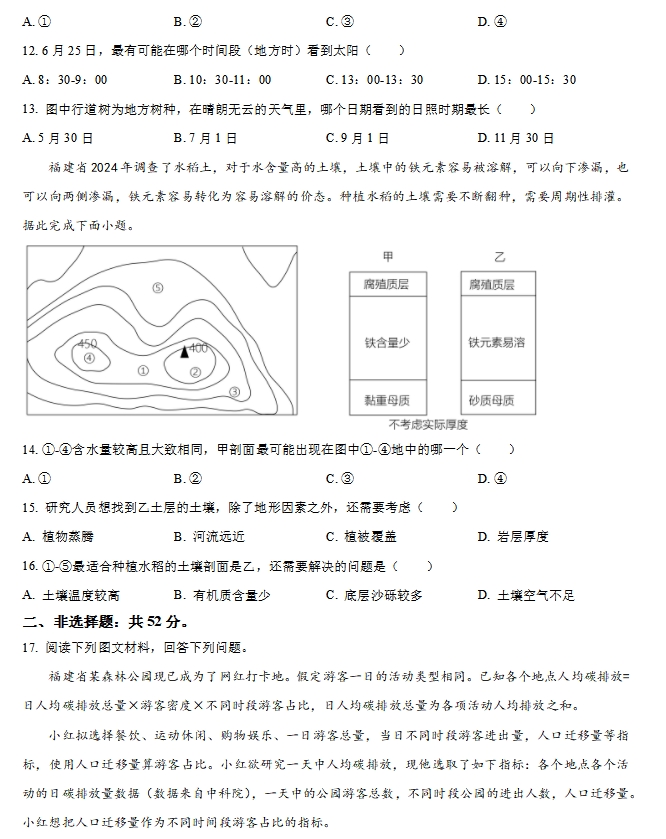 2024年新高考福建地理高考真题