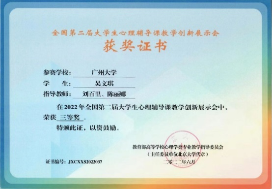 学生部分获奖证书