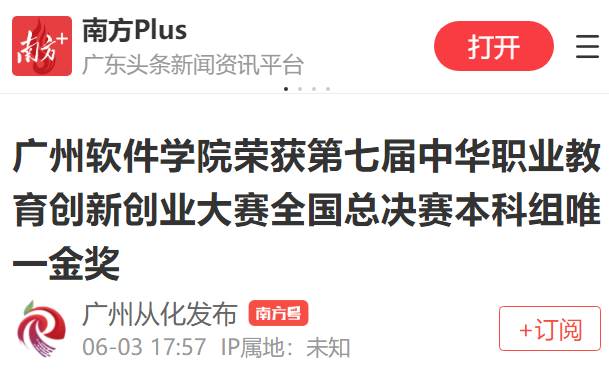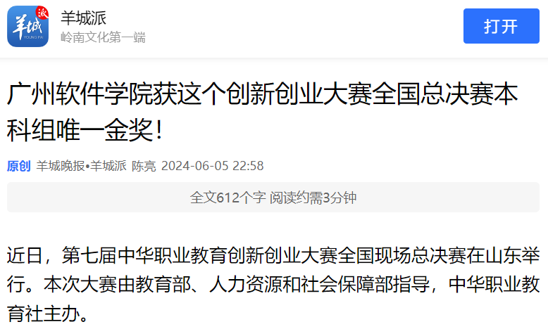 【羊城晚报】广州软件学院获这个创新创业大赛全国总决赛本科组唯一金奖!(2024年6月5日)
