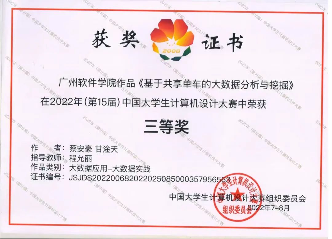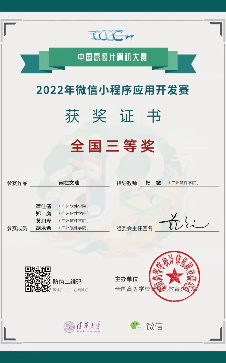 2022年微信小程序应用开发赛全国三等奖、华南赛区二等奖。