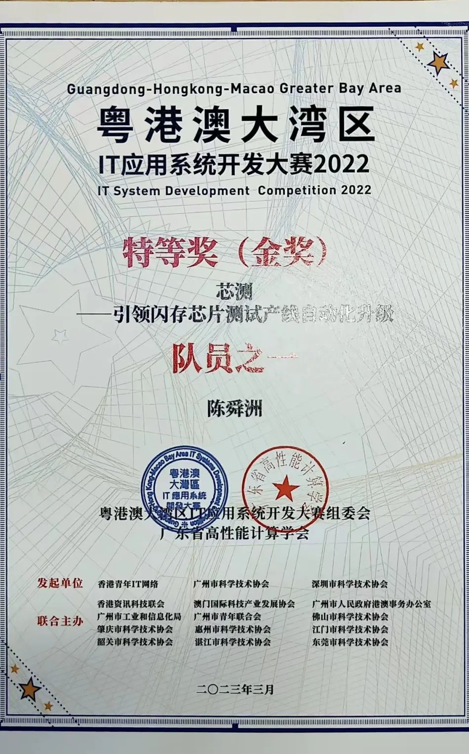 2022年粤港澳大湾区IT应用系统开发大赛特等奖。