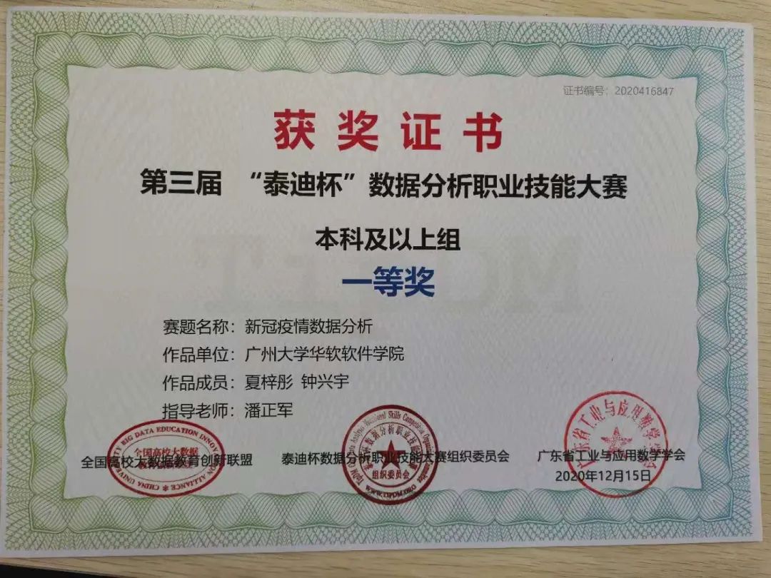 第三届“泰迪杯”数据分析职业技能大赛一等奖。