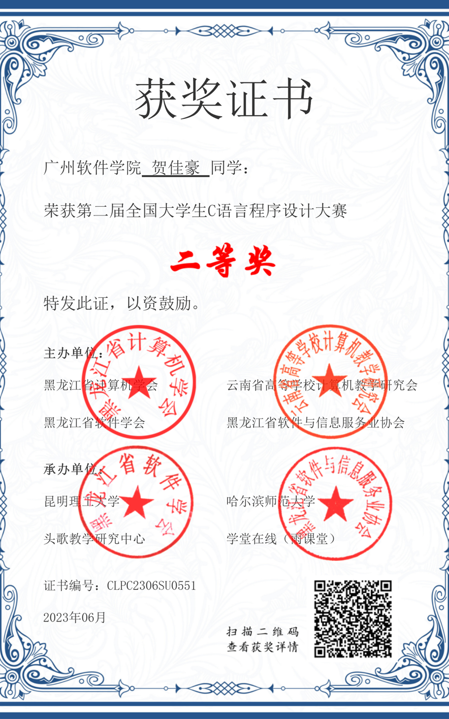 第十五届中国大学生计算机设计大赛全国二等奖、三等奖。