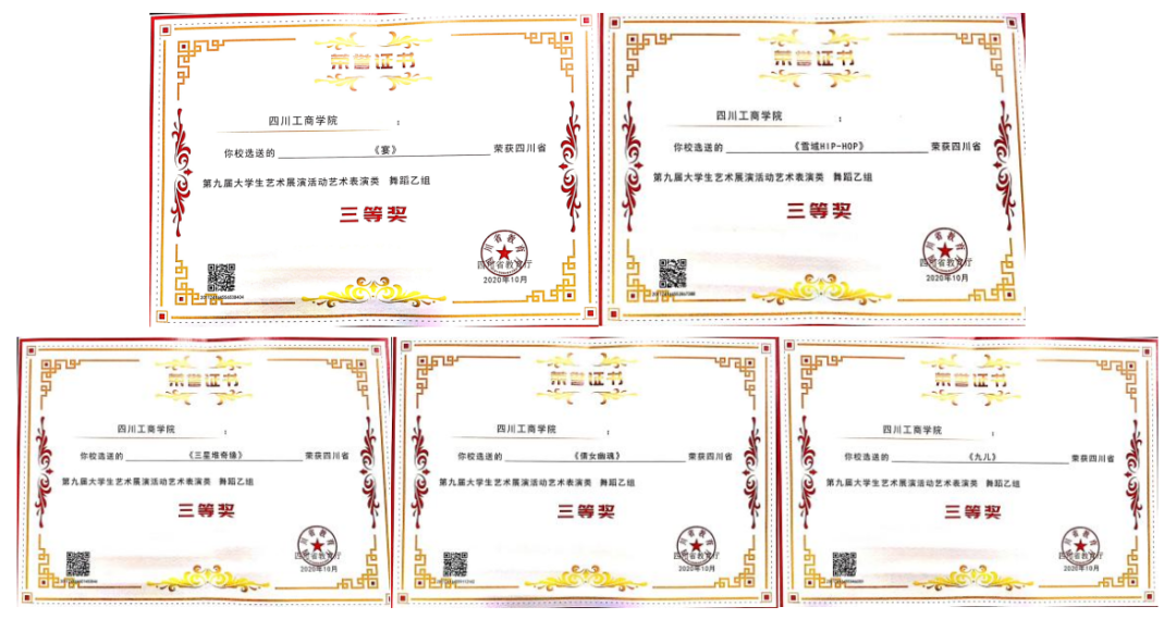 学院与地方政府、企业、行业协会等共同搭建“教、赛、学”的高层次艺术实践平台,共建“行业协会联合培养机制”,实施分类定向培养。近年来组织学生参加四川省第十届大学生艺术展演、黑池舞蹈节(中国)成都公开赛、四川省全民健身运动会、四川省体育舞蹈(国标舞)锦标赛等省厅级、行业协会大赛等,累计获奖700余人次。