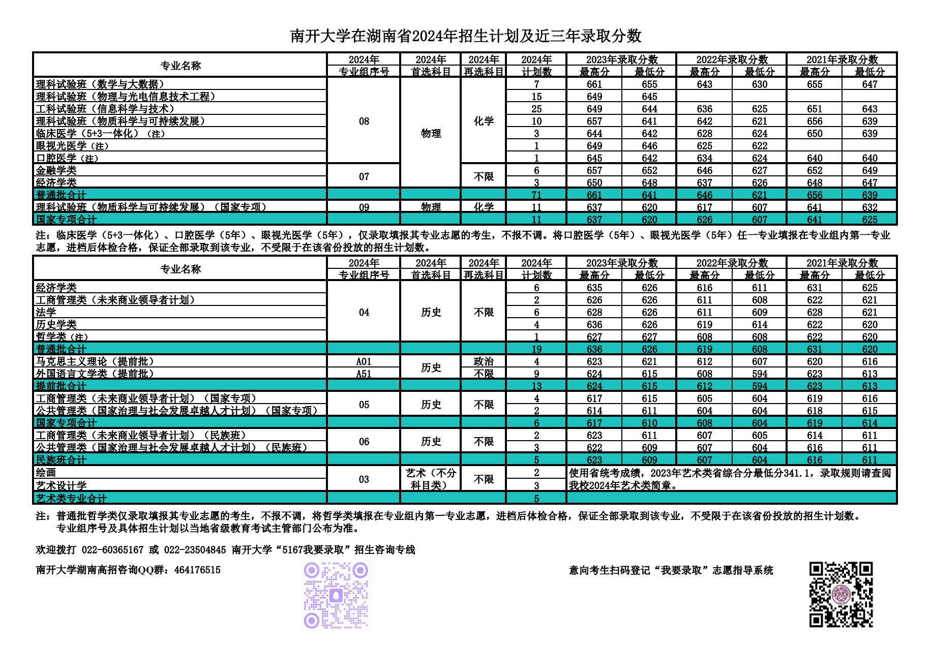 南开大学在湖南省2024年招生计划及近三年录取分数.pdf