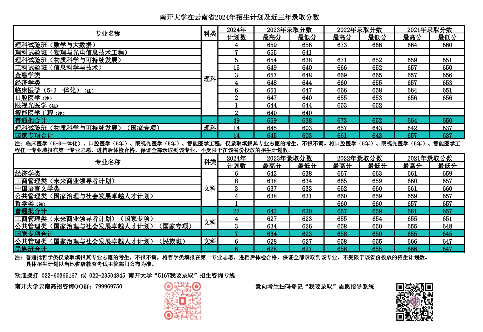 南开大学在云南省2024年招生计划及近三年录取分数.pdf
