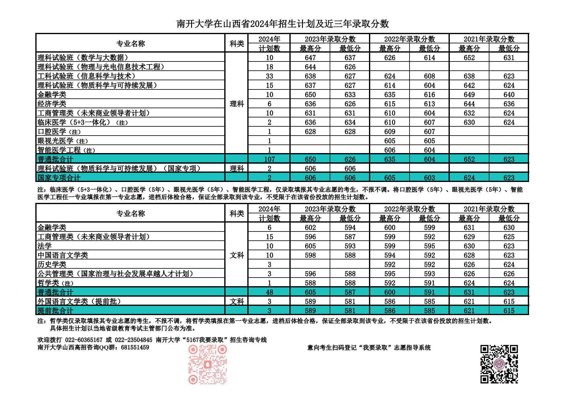 南开大学在山西省2024年招生计划及近三年录取分数.pdf