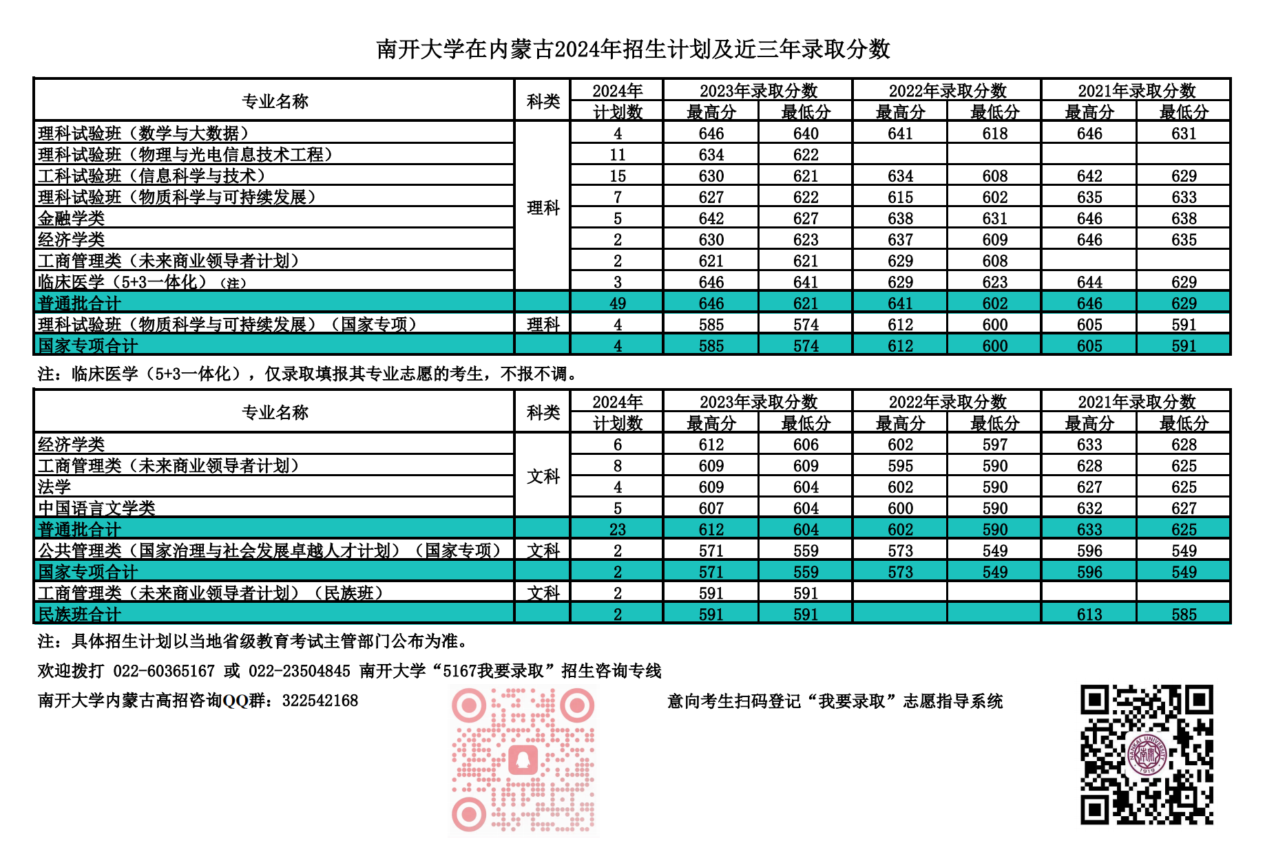 南开大学在内蒙古2024年招生计划及近三年录取分数.pdf