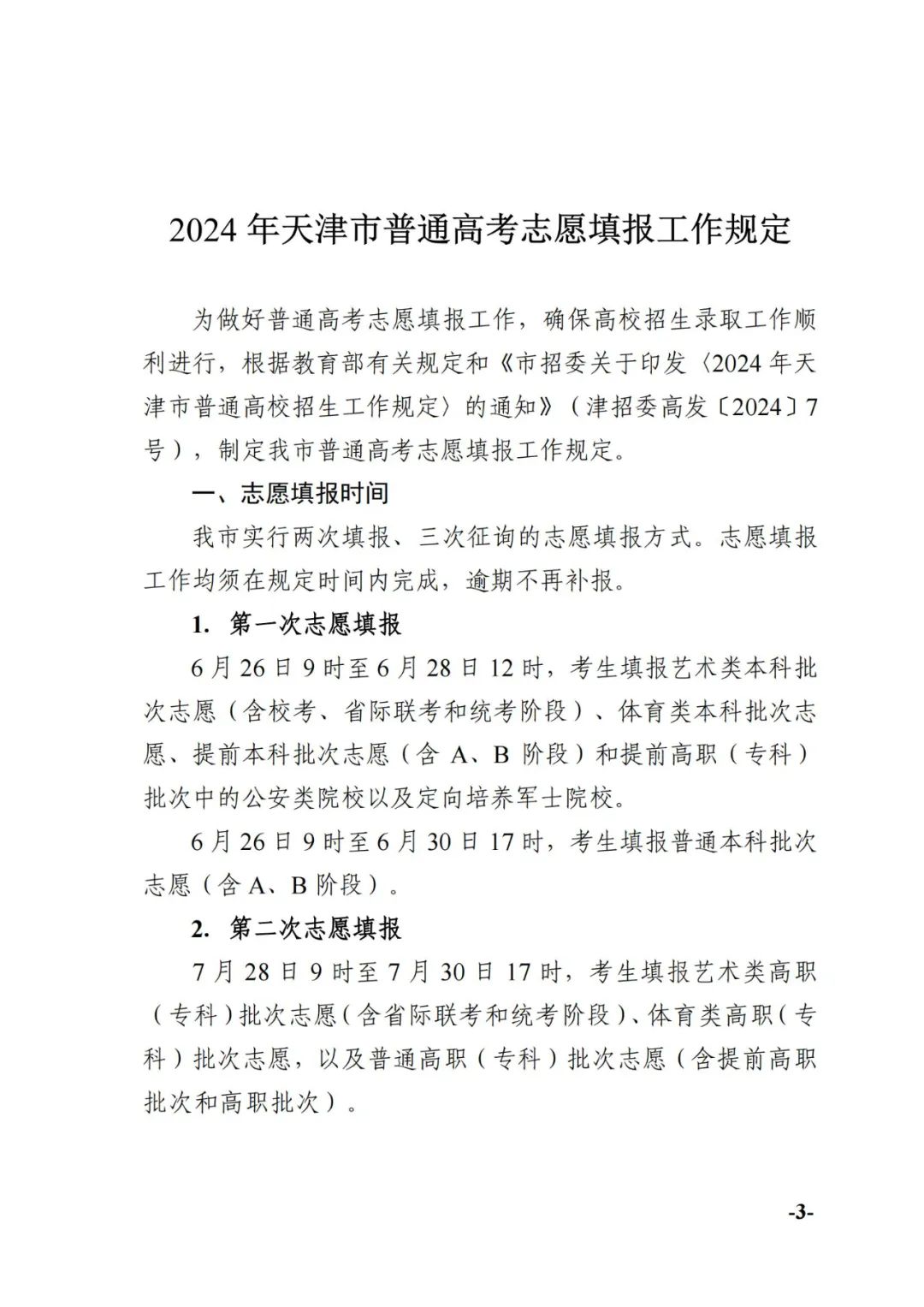 日前,市招委下发关于做好2024年天津市普通高考志愿填报工作的通知,并印发《2024年天津市普通高考志愿填报工作规定》,对今年高考志愿填报工作的有关事项进行了明确。