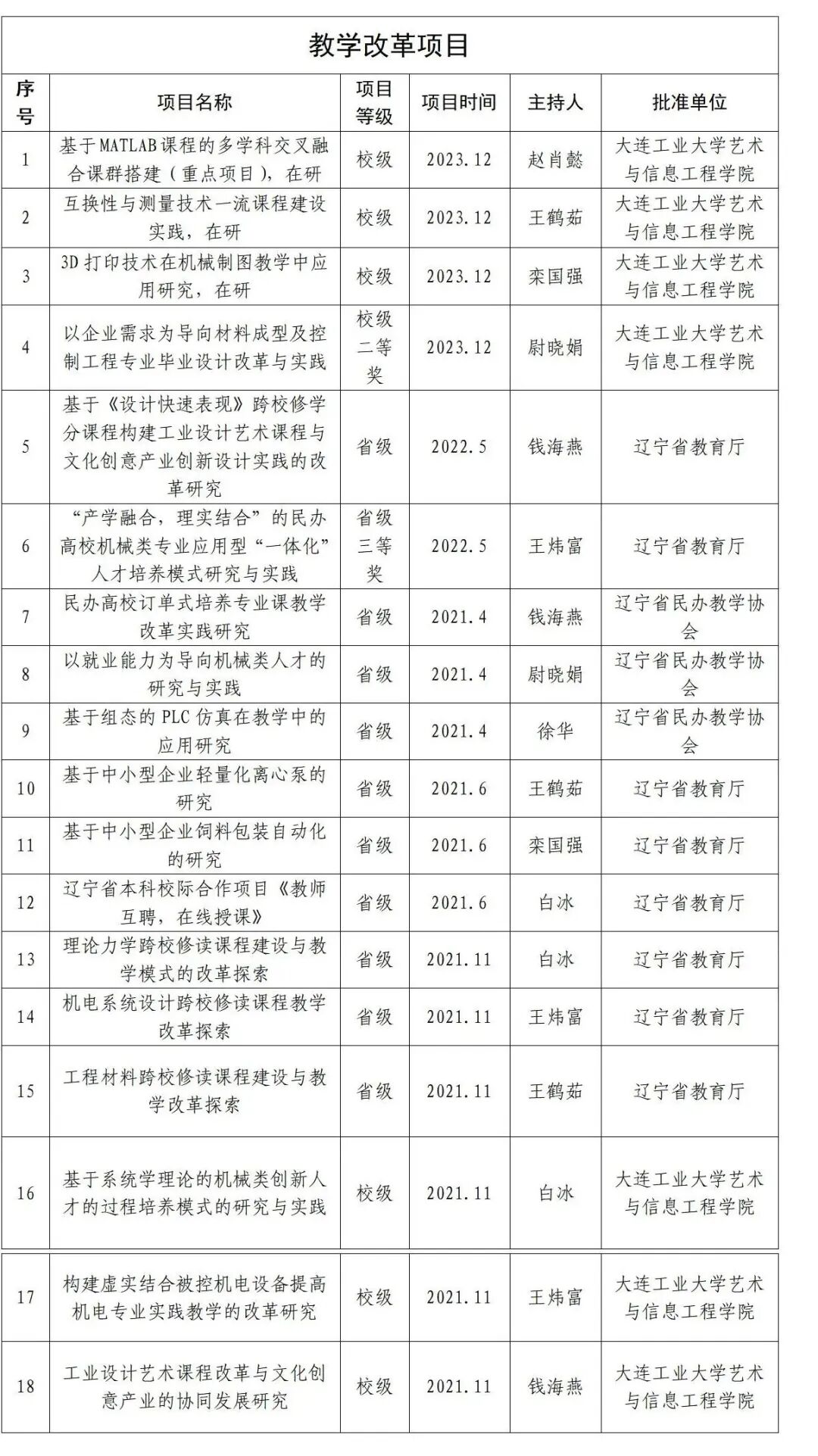 2020年,机械工程专业获批辽宁省普通高等学校一流本科教育试点专业。近三年,先后获得省级教学成果奖二等奖3项,三等奖2 项,6 门专业课获批省一流本科课程,3名教师获得省级教学创新大赛奖项。目前,已建成省级“综合改革试点专业”1个、省级“创新创业改革试点专业”1 个、省级“高等学校新型智库”1 个、省级“大学生实践基地”5个。机械工程系坚持教学与科研并举,科研带动教学模式,获得包括国家建设环境部、辽宁省自然科学基金等省市级以上科研项目50 余项,获得省部级科研奖励5项,在国内期刊发表论文200余篇,获得专利20余项,出版教材和专著10部,获得创新创业项目立项300余项,每年有上百名同学参加国内外各种大赛,已获得国家级、省级等各种大赛特等奖、一等奖200多项。