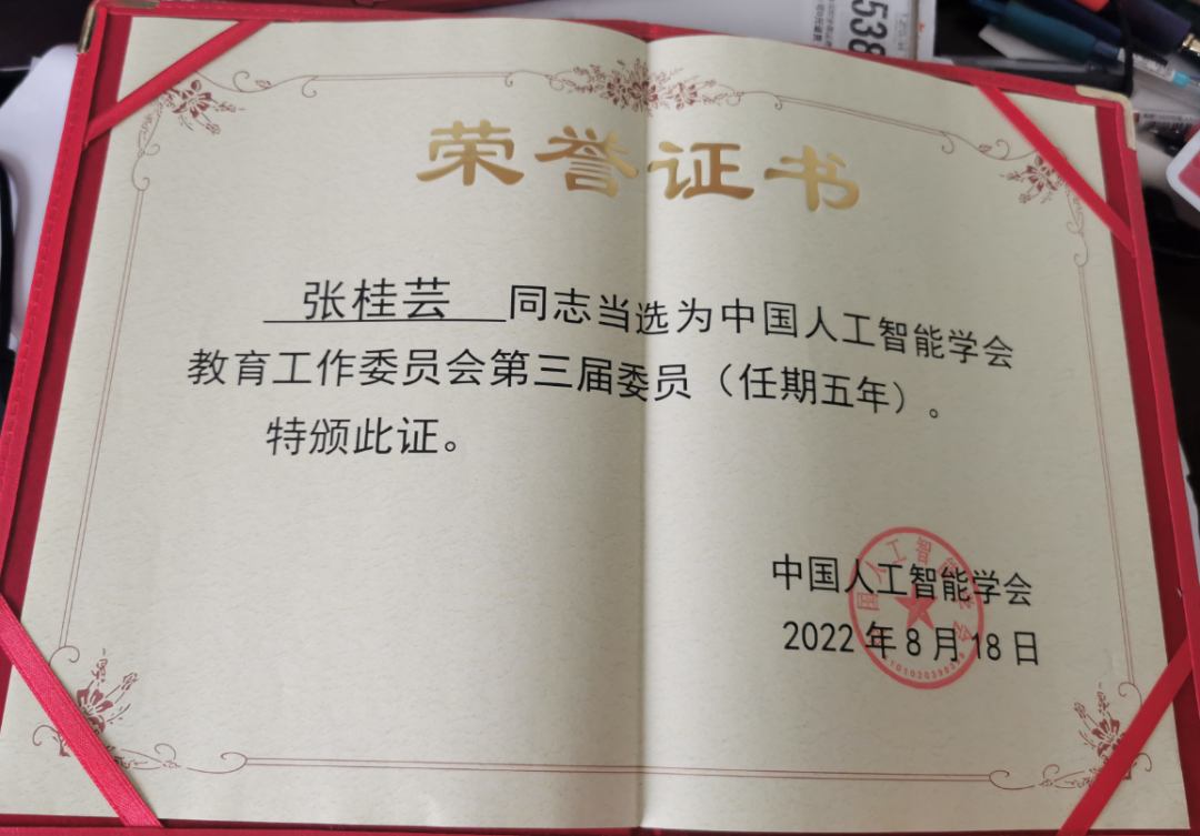 六、踔厉奋发 博爱社会各项工作 张桂芸教授现任中国人工智能 学会理事,中国人工智能 学会离散智能计算专委会副主任,在国内离散数学界有一定影响。全国高等院校计算机基础教育研究会理事,中国计算机学会大数据 专委会通讯委员, 中国人工智能 学会人工智能 教育工作委员会委员,全国高等院校计算机基础教育研究会数据科学 专委会委员。中国大学生计算机设计大赛评比委员会专家、中国数据 挑战赛命题专家、评委;天津市人工智能 学会理事、天津市电子学会理事、天津市仪器仪表学会理事、天津市大数据 协会专家、天津大学 智能与计算学部本科教学质量评价工作组专家。天津市高新技术企业认定评审专家,天津市出版物审读专家,天津师范大学 教材审查委员会委员,天津师范大学 教师 工作委员会成员。曾任教育部高等学校计算机科学与技术 专业教学指导分委员会专家工作组成员、中国计算机学会YOCSEF天津分论坛学术委员会(AC)委员等等,这些工作提高了学院学科建设的水平,增加了学院与领域专家的交流,扩大了我院、我校在行业和高校的影响。2019年被中国人工智能 学会授予“杰出贡献奖”和“杰出会员”称号。2016年荣获天津市教育系统劳动竞赛“示范岗”称号。