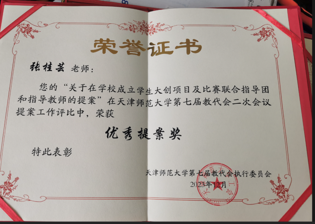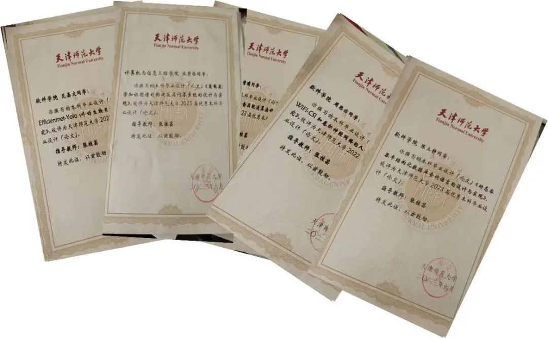 二、 笃行初心潜心帮助师生发展 张桂芸教授热爱自己的学生,关心学生在课程学习、专业发展中遇到的困难,是学生的良师益友,愿意做学生的贵人和引路人,比如对缺乏自信心学生的及时鼓励;善于抓住一切机会的分析与引导;对浮躁或膨胀学生的提醒等等,她想让所有的学生都优秀,让优秀的学生更优秀。她注重学情分析,以学生发展为中心,对学生总是循循善诱,谆谆教诲,期以进步。在同学中有较高的认可度和信任度,很多同学愿意找她聊天,尤其遇到学习、学业规划的困惑,遇到考研和竞赛如何准备,工作和出国如何选择等等。每年的本科毕业论文选择导师她都是非常抢手的,她指导的本科论文几乎每年1-2篇被评为优秀。她还积极引导学生创新,参加创新创业项目,参加各种比赛。曾获得全国高校计算机能力挑战赛优秀指导老师,2020-2023年指导的“互联网+”大赛获得国家银奖、铜奖、天津市金奖等共7项,指导市、校级大创项目6项,每年也会为很多学生写保研和出国留学推荐信。18级软件的郭同学谈到:有一次课后作业字体比较潦草,张老师在后面给我写的一段话:“孩子,希望下次多用心。你是好学生,作业不该写成这样子!”我被老师的话触动了,懈怠的大学生活不是我想要的。自那次以后,我都会认真的完成每次作业,上课也会积极的互动。到了大二,我开始参加一些比赛。计算机设计大赛、互联网+等大赛都获得国家级的好成绩,我非常感谢张老师对我的点拨。这只是众多受益学生的一个缩影,很多学生毕业时总愿意找她合影,互留信息。毕业后还跟她是好朋友,汇报自己的发展,包括遇到纠结的问题也愿意和她商量。