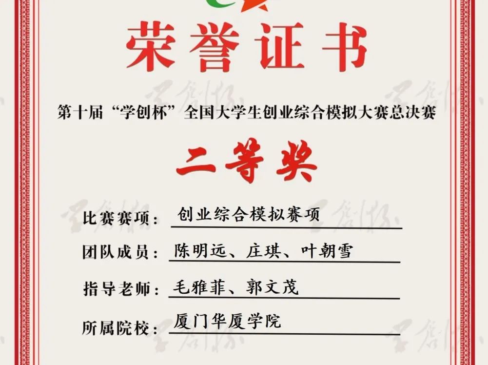 30余年的传承奋进,学院已形成“政行企校媒联动,产学研用创协同 ”的良性发展格局,育人成果喜人,学生在多项高水平学科竞赛中斩获丰硕成果 ,在美国数学建模竞赛、全国供应链 大赛、全国商业精英挑战赛、“学创杯”全国大学生创业综合模拟大赛、全国大学生投资理财 规划大赛,全国大学生物流 仿真大赛、全国财务 决策大赛、全国金融与证券投资实训大赛、全国大学生电子商务 “三创赛”挑战赛、全国大学生工程训练综合能力竞赛等赛事中屡获特等奖、一等奖等殊荣。涌现出宁夏回族自治区青年联合会副秘书长、吴忠市政协委员施志雄,学校校友总会副理事长、厦门涪安建设工程有限公司总经理纪南京,校友总会秘书长、珠海复韬资本投资有限公司合伙人陈孟强,IVORK利沃科集团董事长卢劲,厦门唐基文化艺术有限公司创始人杨晓杰,大连海事大学 博士研究生赵力澄,选调生康纬智、魏新宇、张颖丹等一批杰出校友,累计为社会输送优秀人才一万余人。