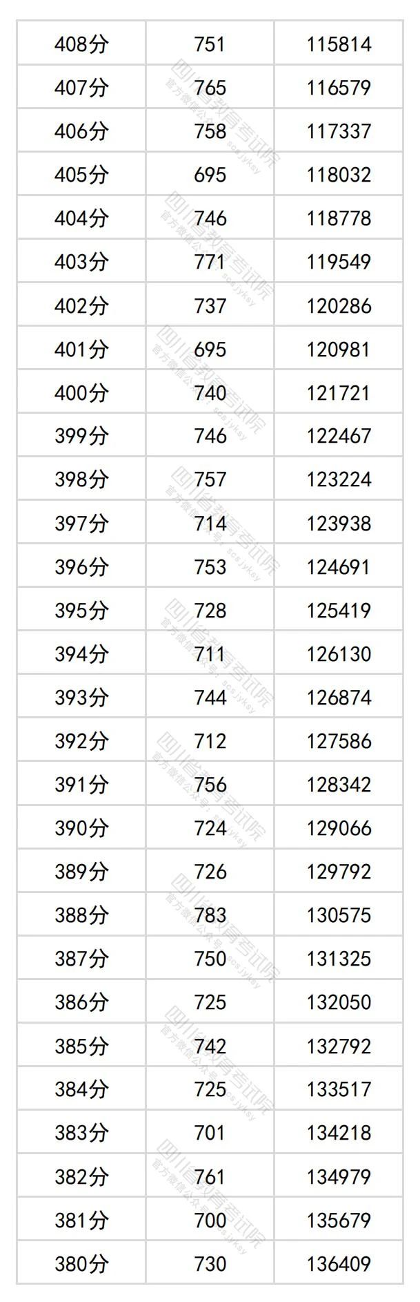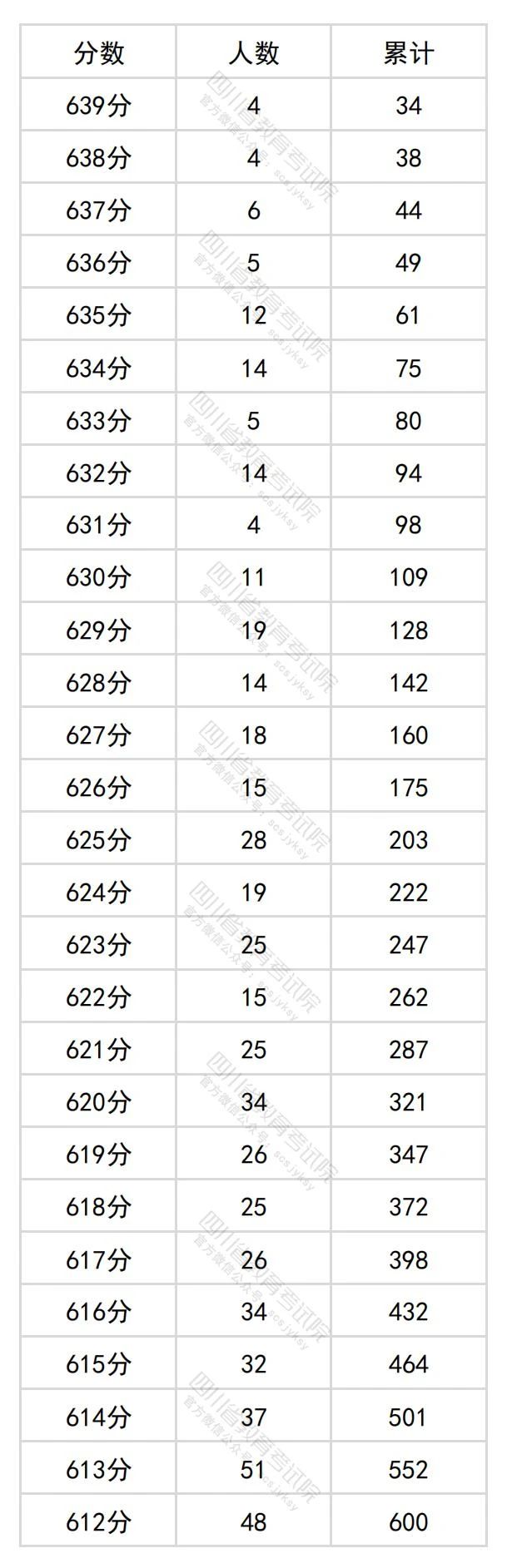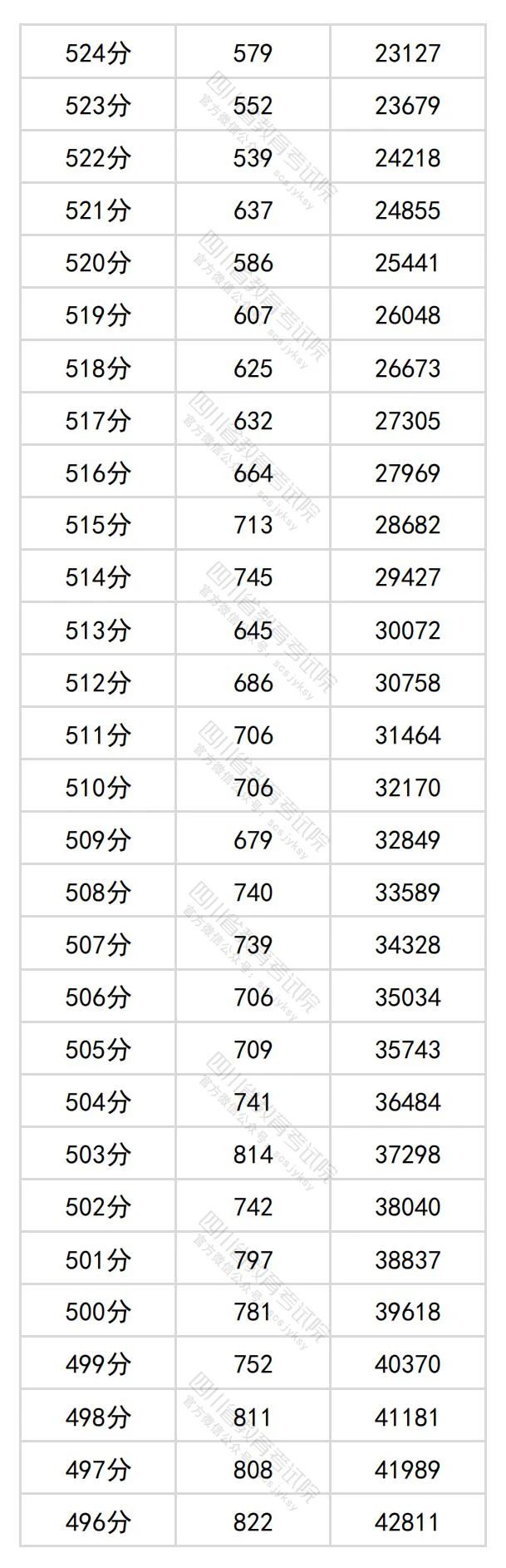 文章来源:四川教育考试院 四川省2024年普通高考文科成绩分段统计表出炉!