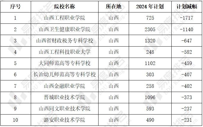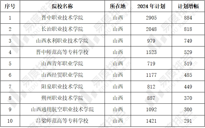 2024年山西高考扩招和减招TOP10高校