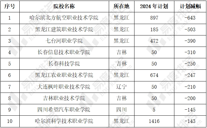 表 3 2024年黑龙江高考减招TOP10高校(专科普通批次)