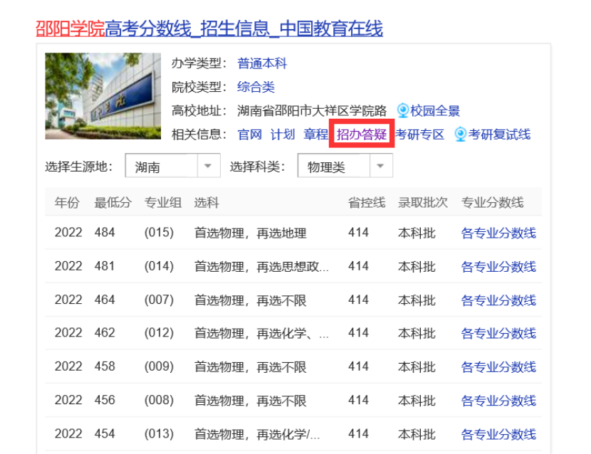 可以直接点击红色圈里面的“招办答疑”进行咨询。
