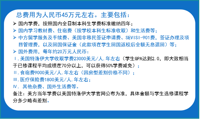 1.本项目是中美高校学分互认联合培养的双学位项目,要求无出国意愿的考生不要报考本项目。