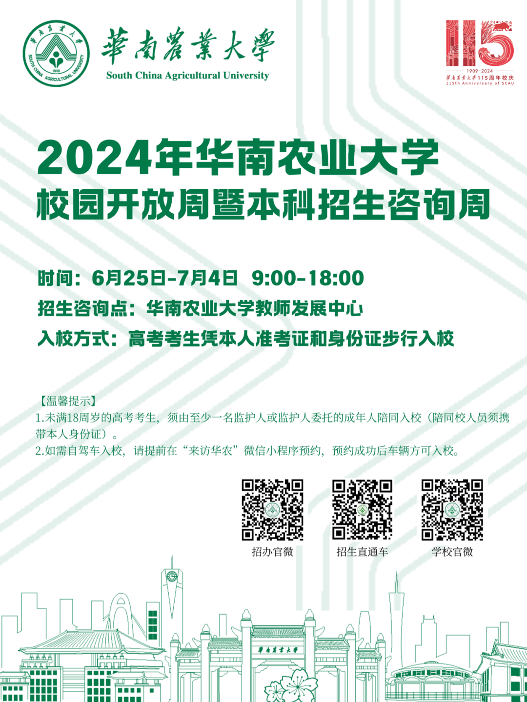 2.如需自驾车入校,请提前在“来访华农”微信小程序预约,预约成功后车辆方可入校。