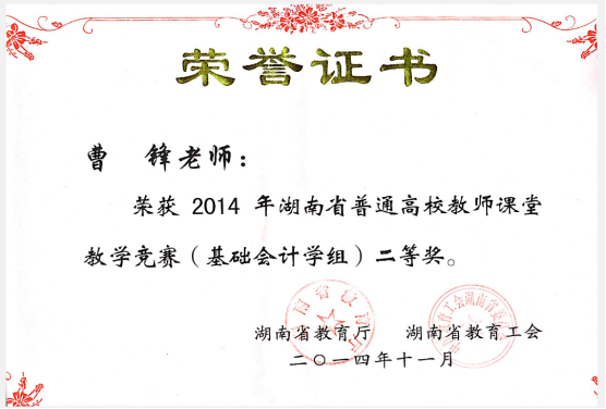 2014年湖南省普通高校教师课堂教学竞赛二等奖