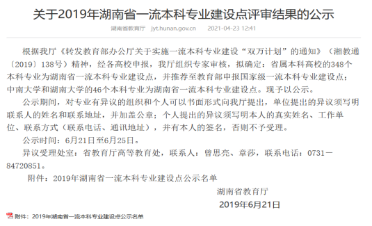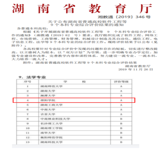 法学专业湖南省本科专业综合水平评价获评A类专业