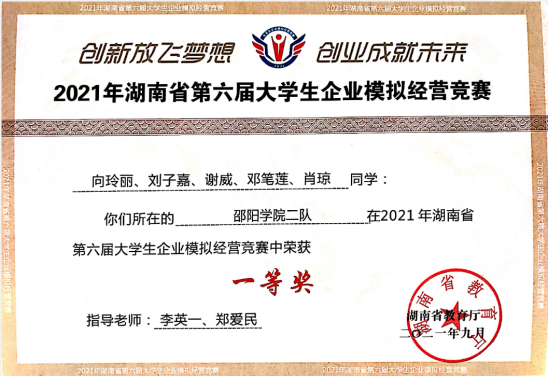 2021年湖南省第六届大学生企业模拟经营竞赛一等奖