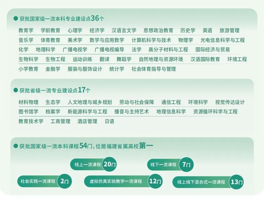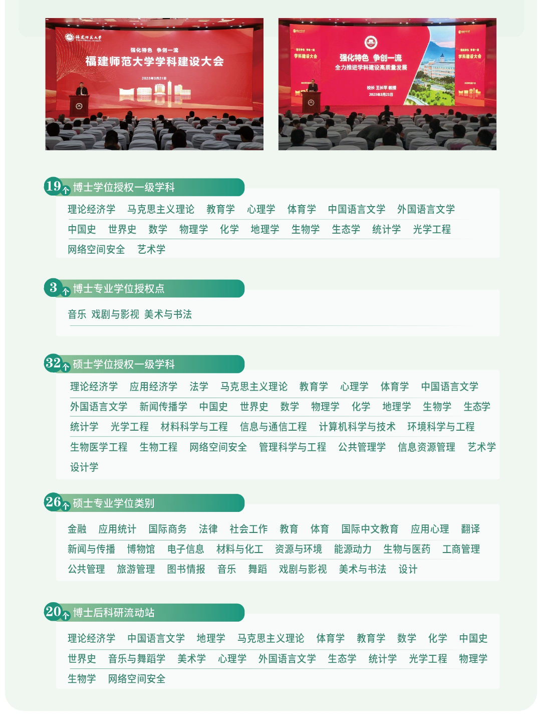 ·04◆学科齐全 实力强劲◆学科一流,体系完善。学校充分发挥学科龙头带动作用,着力构建一流文科、高水平理科、有特色工科的学科体系,基本形成了综合性大学的学科布局。多元发展,从福建师范大学开始。