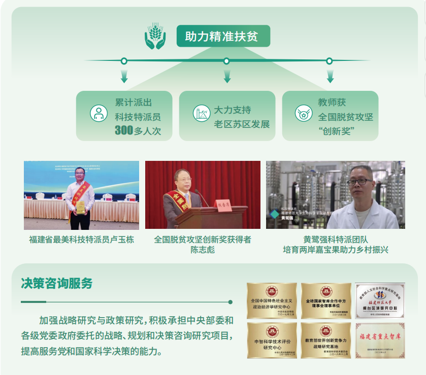 07◆服务社会 融入大局◆产教融合,智绘未来。学校坚持“顶天立地”服务理念,纵深推进产教融合、科教融汇、校地融通,实现教育链人才链与产业链、创新链的有机衔接,打造以支撑引领为基点的高产出社会服务体系。知行合一,从福建师范大学开始。