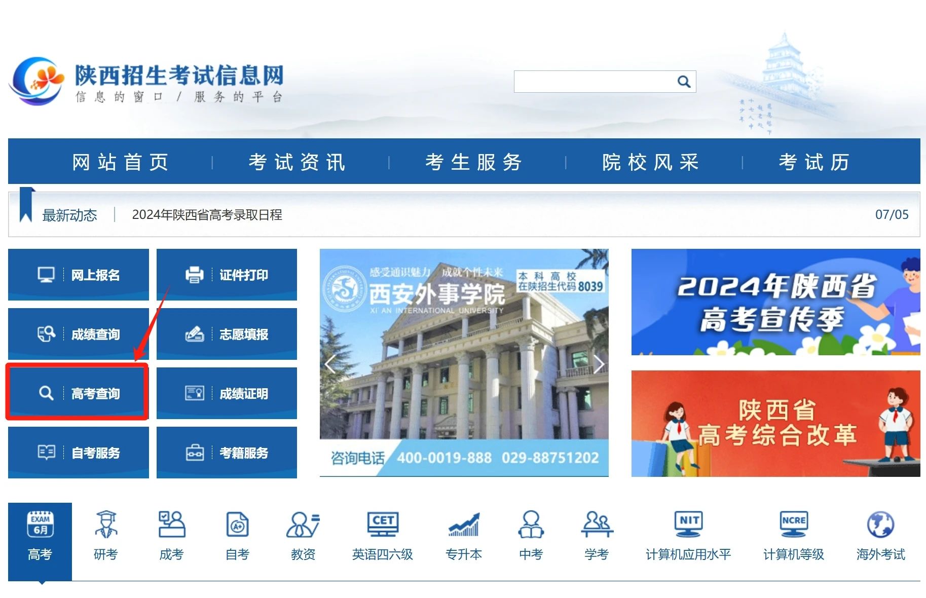 考生凭准考证号、身份证号、高考报名系统密码可登录“陕西省教育考试院门户网站—服务—高考查询—2024年普通高校招生考试录取动态、2024年普通高校招生考试录取结果”和“陕西招生考试信息网—高考查询—2024年普通高校招生考试录取动态、2024年普通高校招生考试录取结果”查询录取动态和录取结果信息。