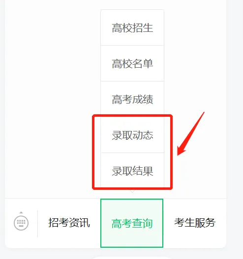 点击“陕西考试招生”微信订阅号底部菜单“高考查询”,可查询录取动态和录取结果信息;