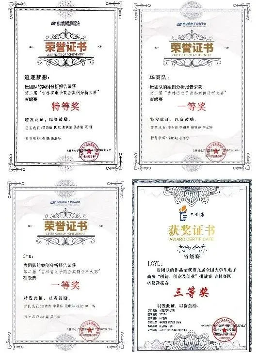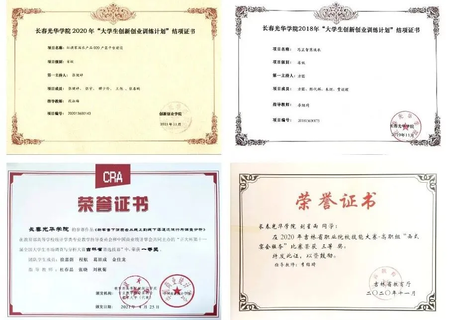 教学成果学院高度注重学生实践和创新能力的培养,广泛组织学生参加各类大学生创新创业大赛及学科竞赛。近3年,学生获批立项教育部产学合作协同育人创新创业联合基金项目近20项;在中国国际“互联网+”大学生创新创业大赛中获省级以上奖项15项;全国大学生电子商务“创新、创意及创业”挑战赛中获省级以上奖项18项;“学创杯”全国大学生创业综合模拟大赛中获省级以上奖项16项;全国大学生市场调查与分析大赛获省级以上奖项3项;在吉林省电子商务案例分析大赛中获省级奖项32项;获批大学生创新创业计划项目40余项,其中国家级9项。