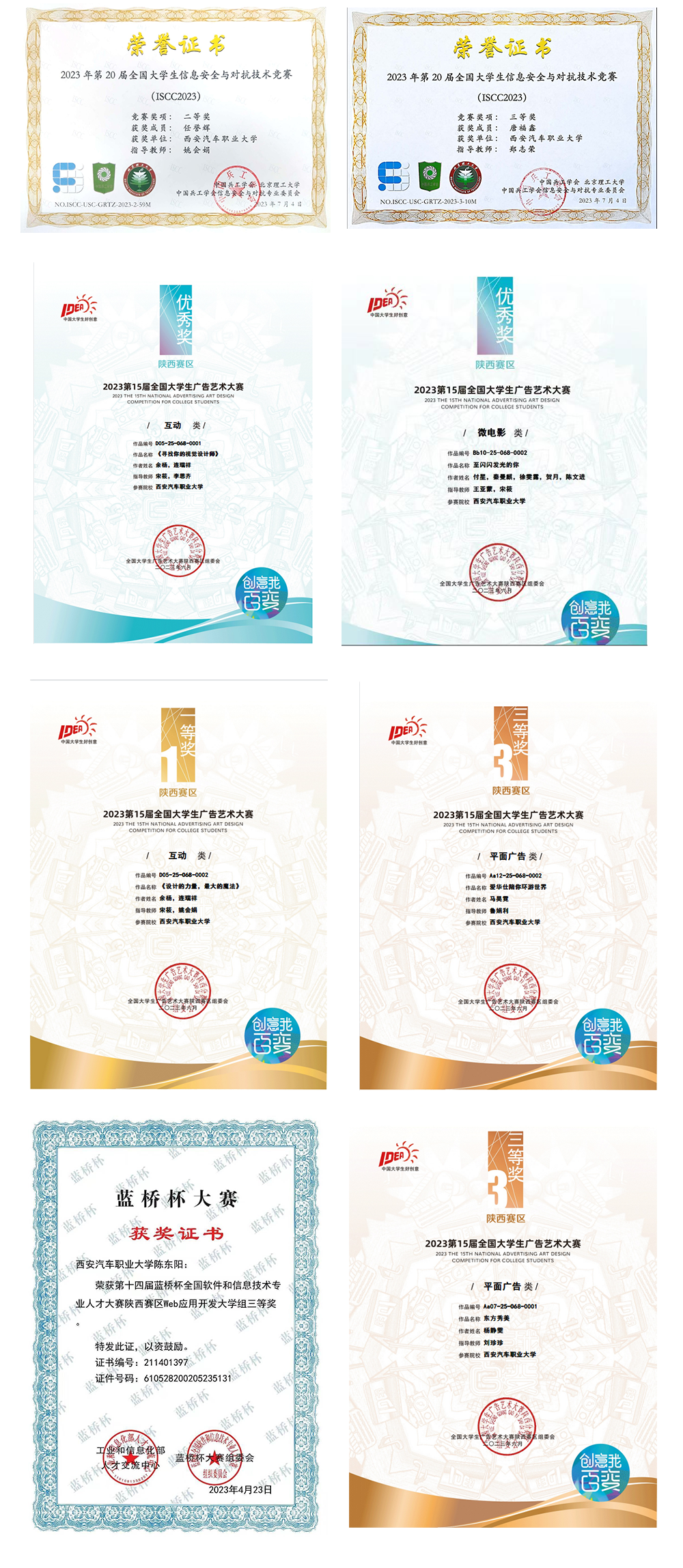 近年来,学院积极组织学生参加全国性学科竞赛和技能大赛,近1年共获国家级、省级奖项50余项。具有代表性的有“2023一带一路暨金砖国家技能发展与技术创新大赛新零售大数据分析赛项国内总决赛”,与全国121所高校队伍同台竞技,经过激烈角逐,最终荣获二等奖。学校被授予优秀组织奖单位。由中国人工智能学会主办的“2023年第十一届全国大学生数字媒体科技作品及创意竞赛”比赛获全国一等奖。除此之外,还有全国新媒体大赛、数学建模比赛、动画制作、大广赛等获得多个奖项。