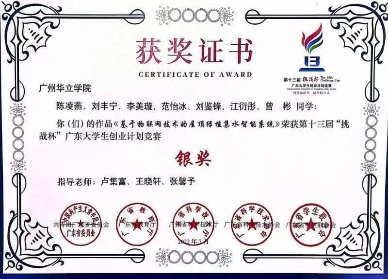 🏆在代表国家级最高水平的大学生A类竞赛“挑战杯”中,华立学子作品每年入围全省决赛屡获多项大奖,成果比肩公办高校,获奖数名列同类高校前茅,其中: