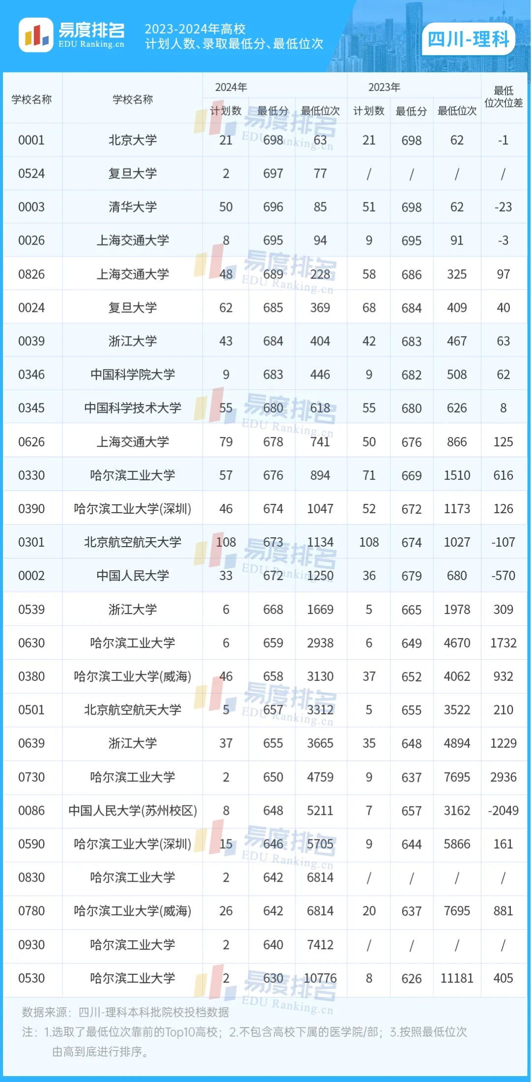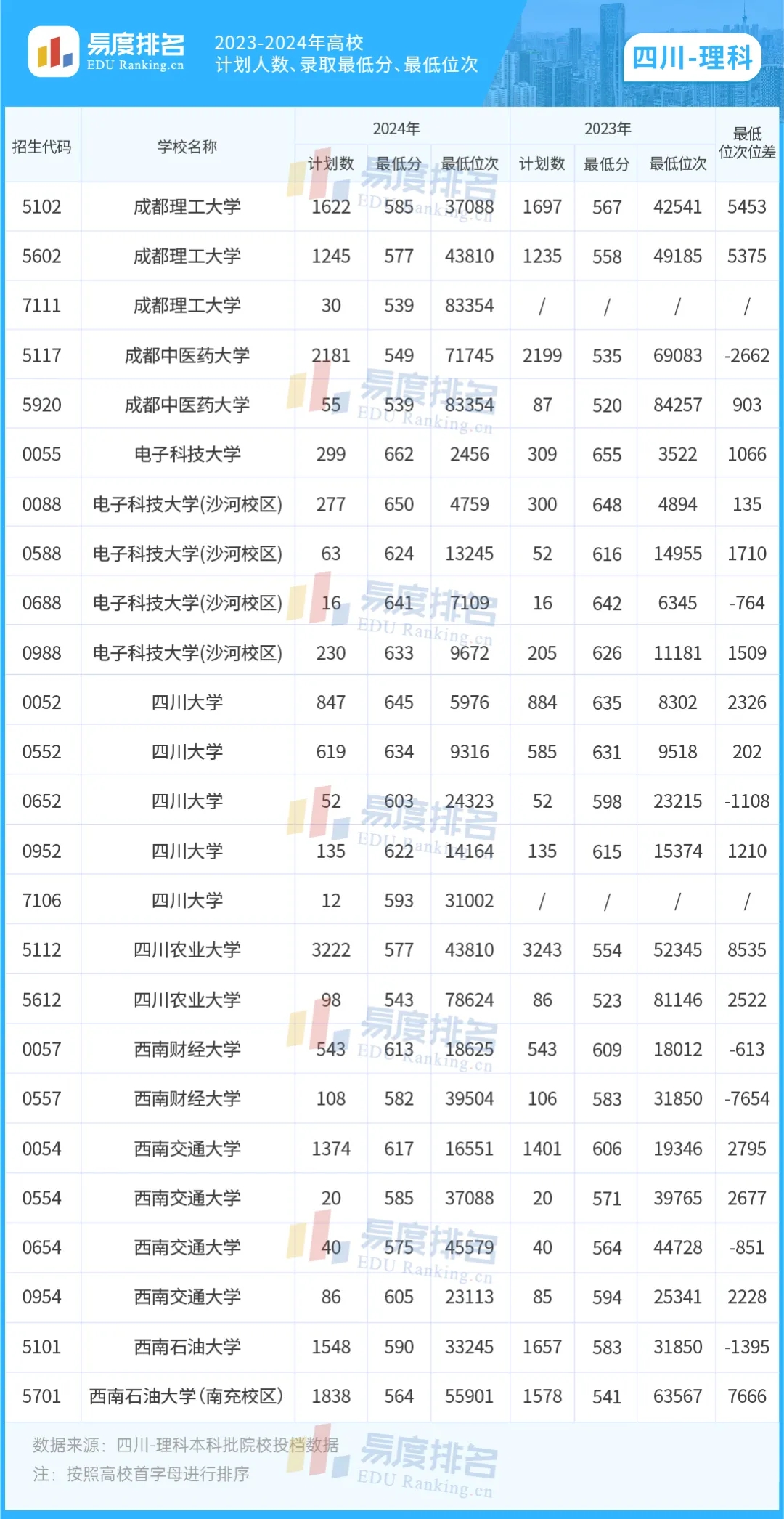 今年川内双一流高校的位次整体都在上升,说明四川对高等教育的大力扶持和高度重视,考生也更加青睐报考本省的学校。