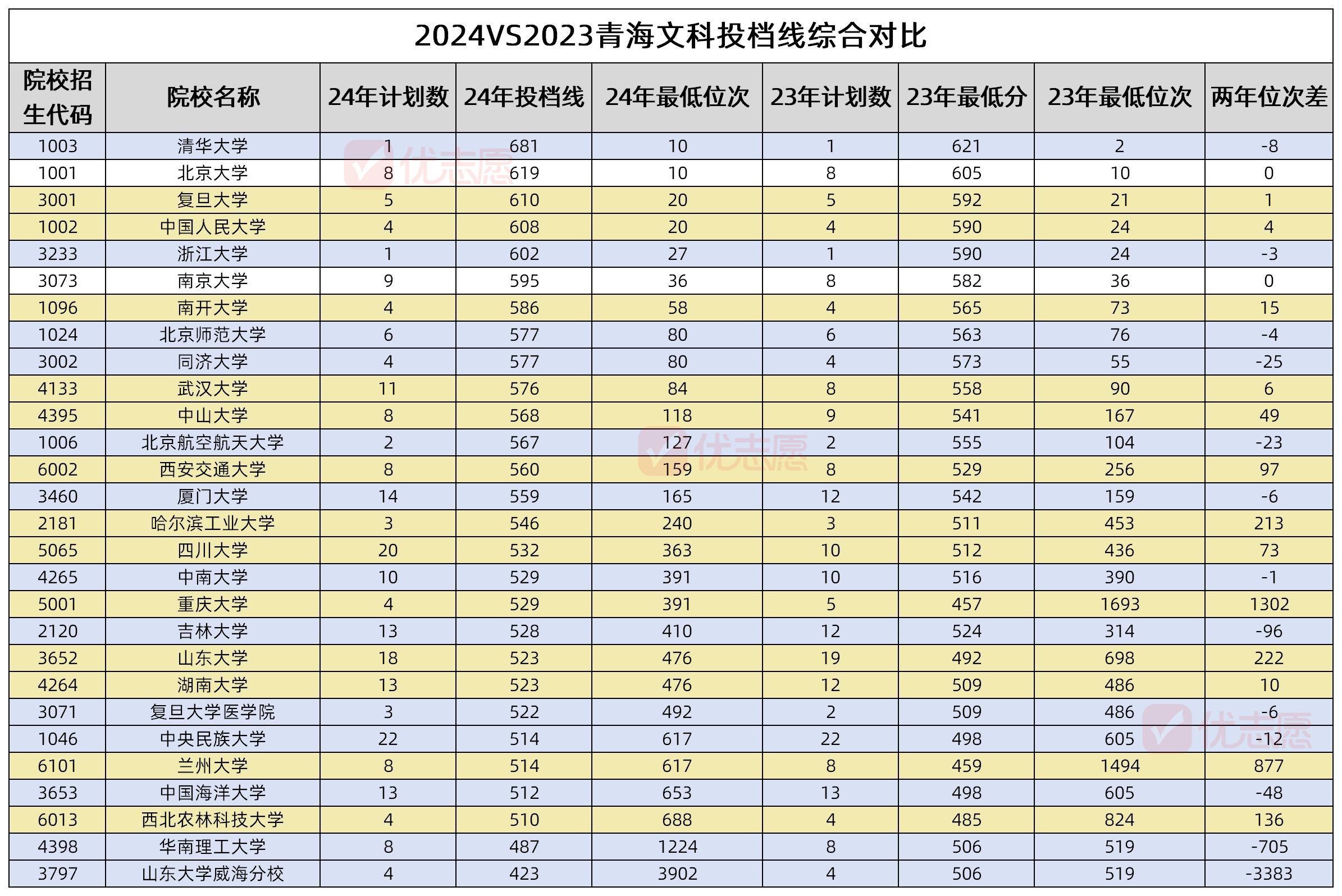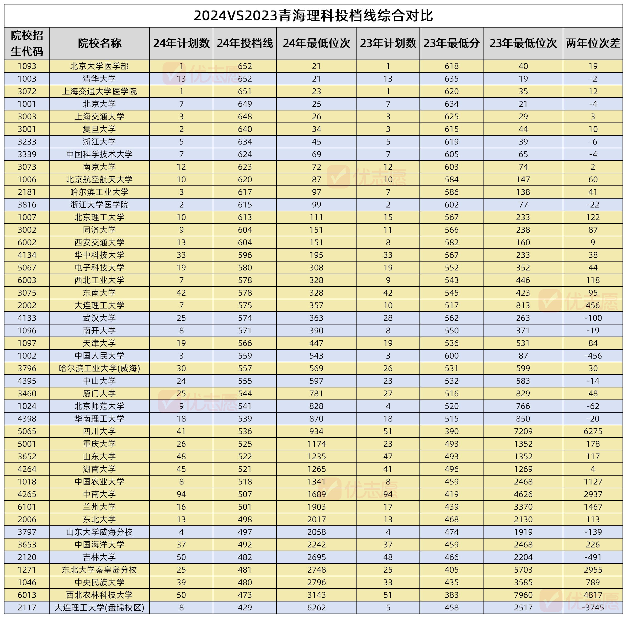 数据来源:1.2023-2024年青海省本科一段批次H段投档数据;2.2024年青海高考一分一段表