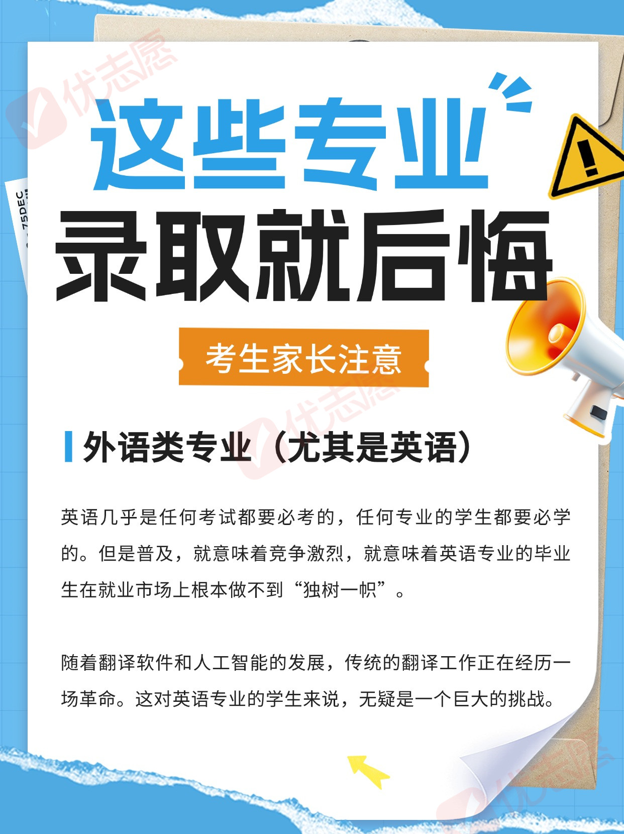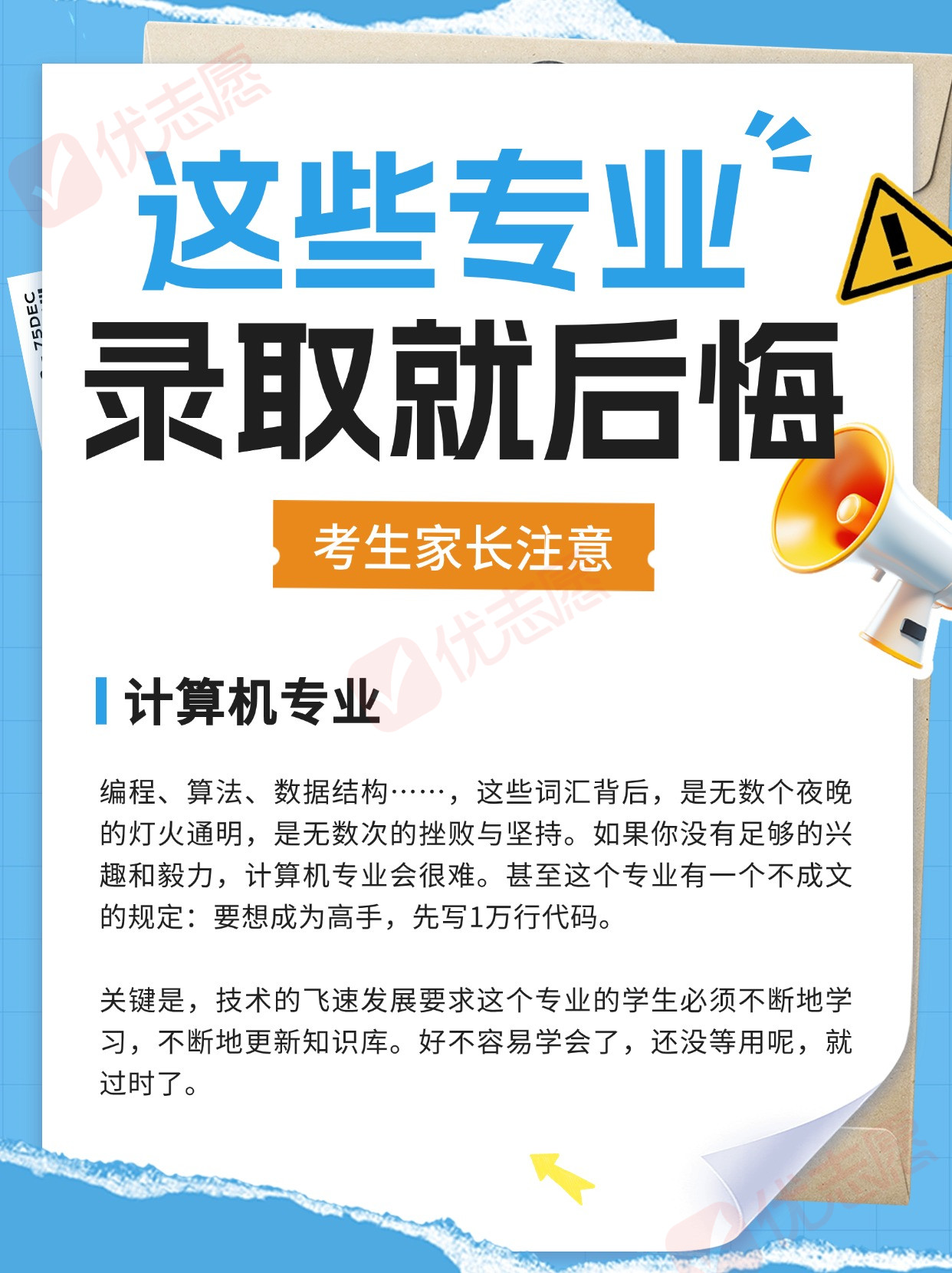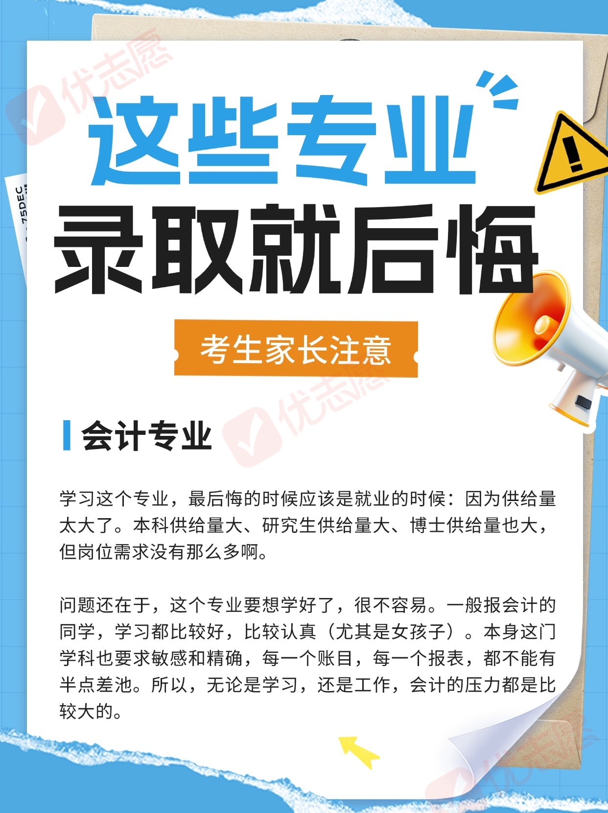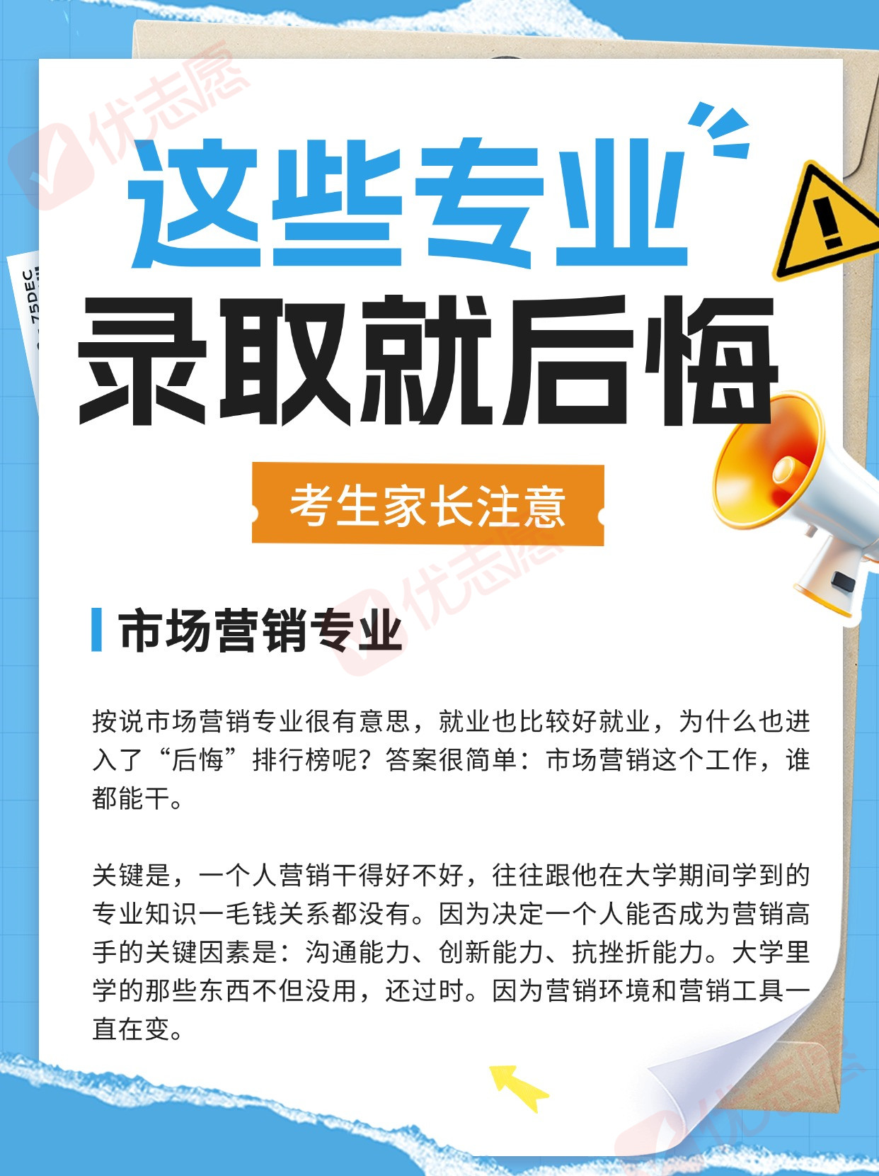 填志愿就看优志愿!现在已经有很多同学收到录取通知了,那么有哪些让人读了就后悔大学专业呢?一起来看!