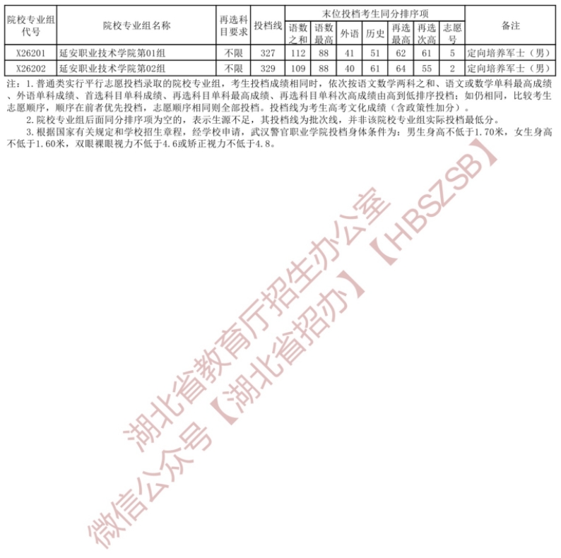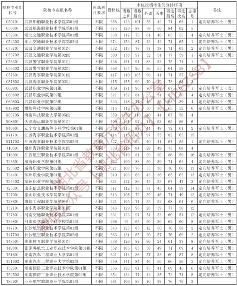 湖北省2024年高职高专提前批(首选历史)平行志愿投档线