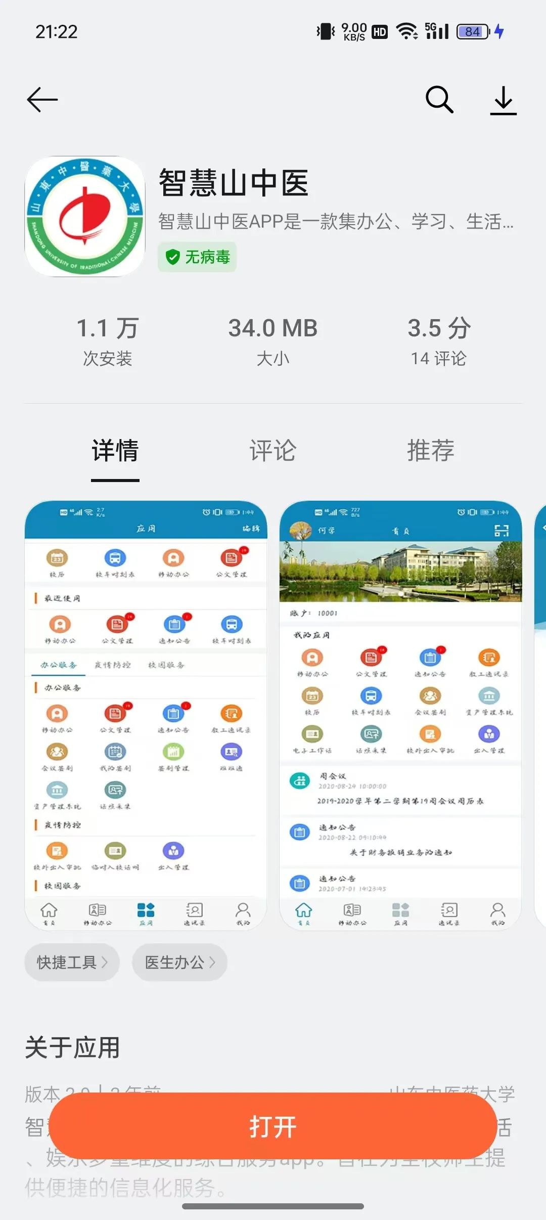 通过扫描新生手册第46页的二维码,或于应用商店查找,下载“智慧山中医”APP。