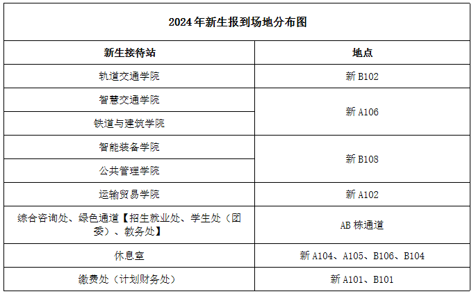 2024年新生报到地点:新校区(重庆市江津区双福新区双庆路1373号)教学楼AB栋一楼,具体如下图