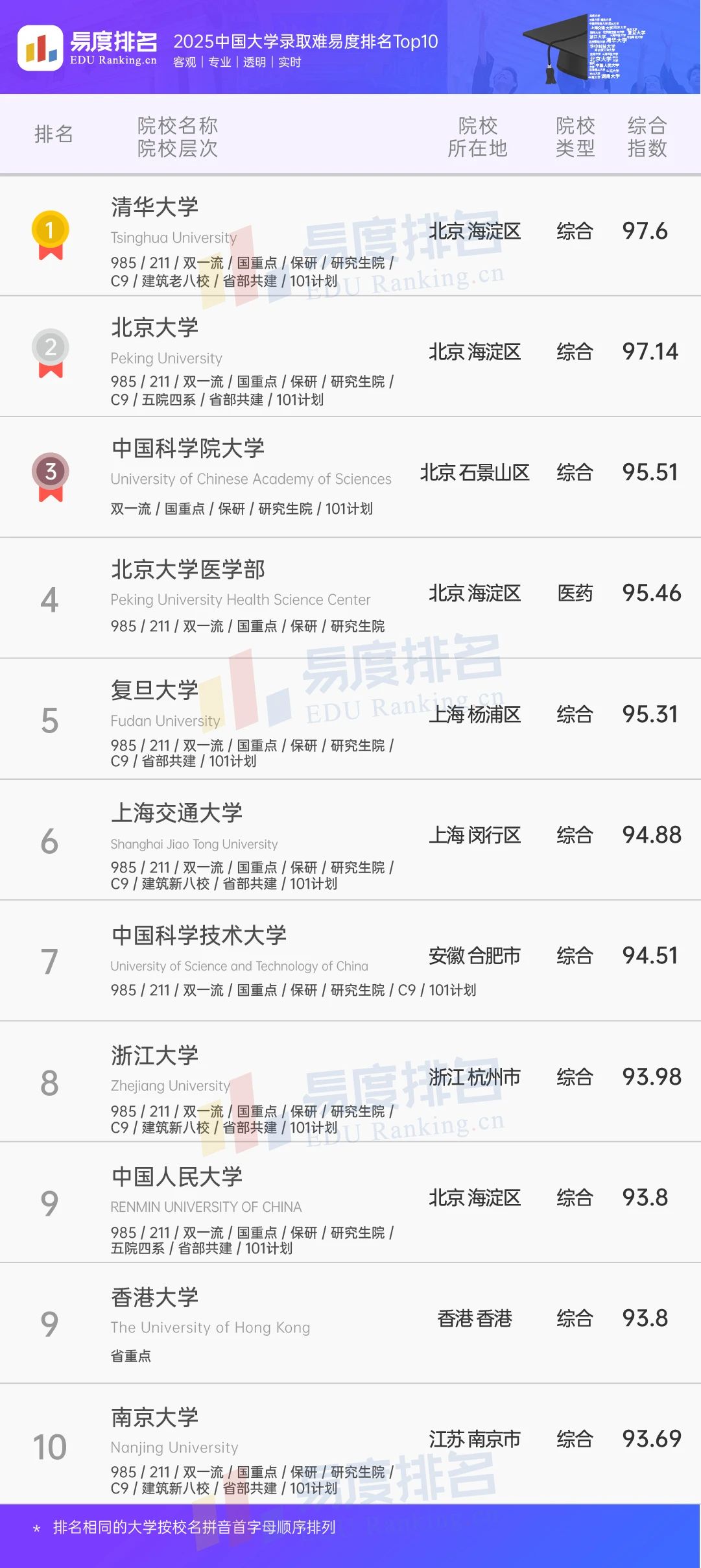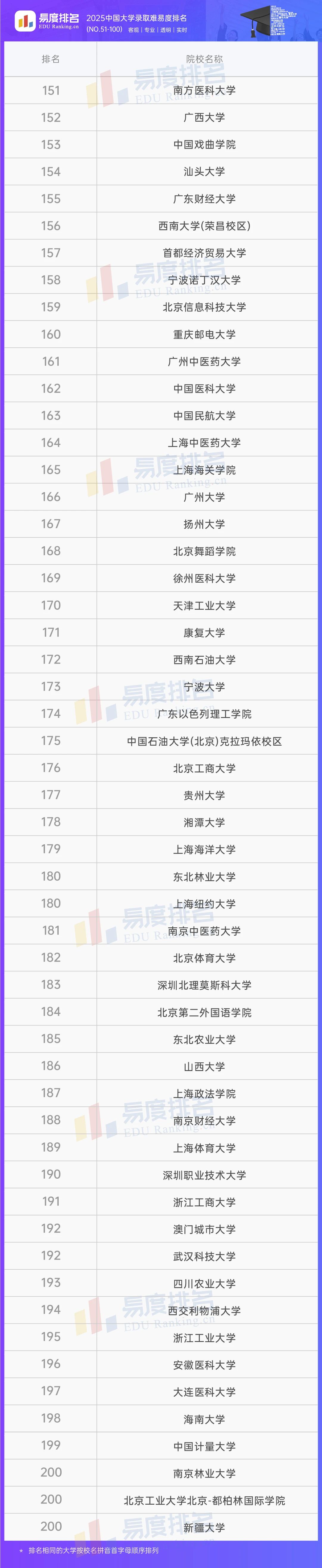 2024年9月3日,易度排名正式发布“2025易度中国大学排名”Top200。(具体排名方式见文末)