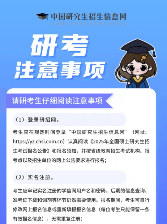 根据《2025年全国硕士研究生招生工作管理规定》要求,2024年10月9日至12日,考生可登录“中国研究生招生信息网”进行研招统考网上预报名,预报名时间为每天9:00—22:00。