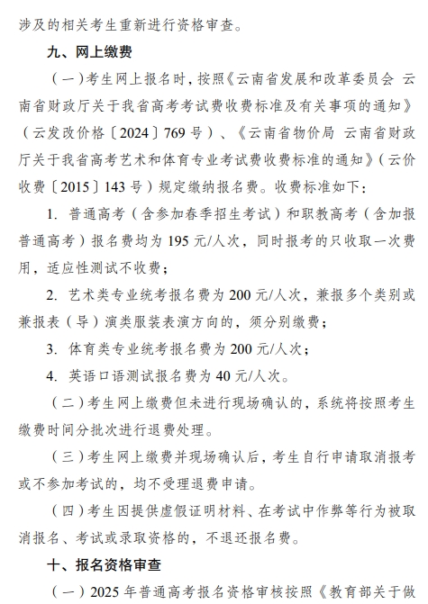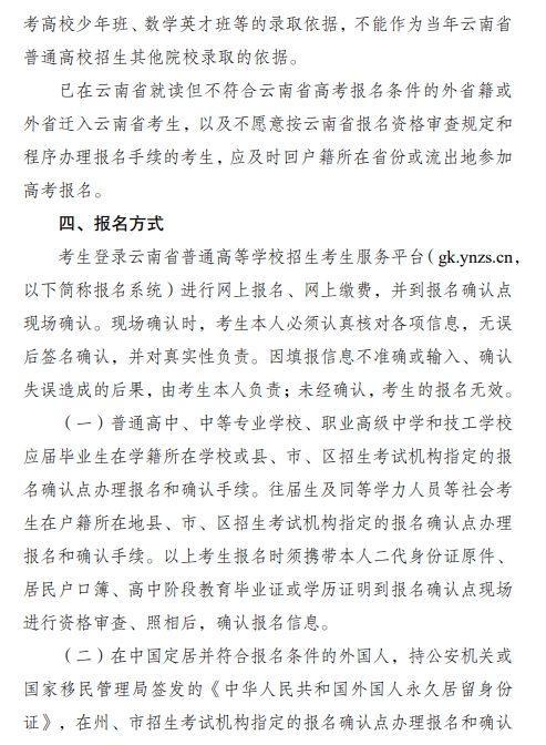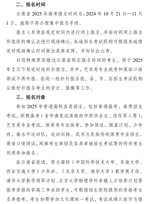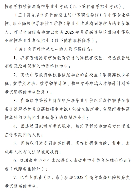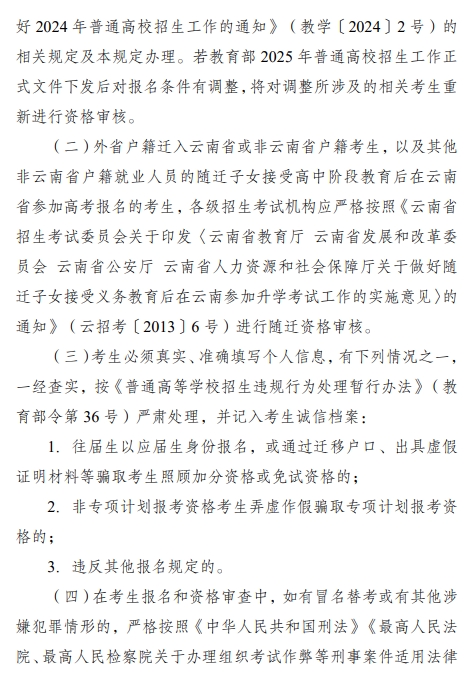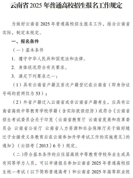 文章来源:云南招生考试院 云南省2025 年普通高校招生报名工作规定