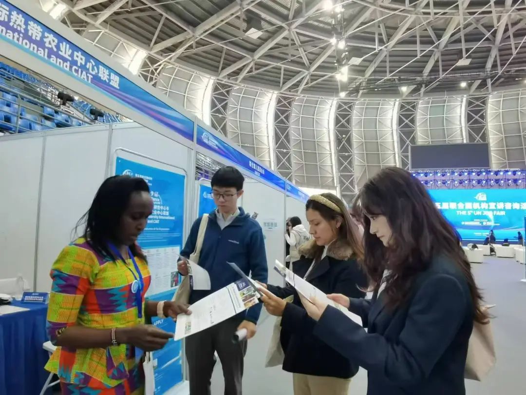 图为我校商学院学生乔婷婷参与国际生物多样性联盟和国际热带农业中心联盟(TheAlliance)的现场互动