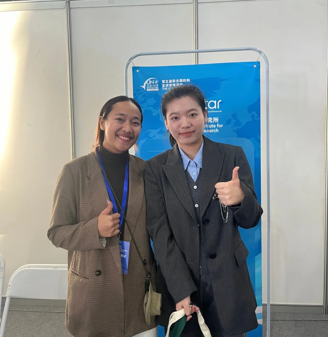 商学院乔婷婷同学说:“我咨询了包括世界银行在内的许多国际组织。我也向世界银行投递了简历,对方也提出了相应的建议。负责人表示,仅仅是成绩好还不够,世界银行会考量学生们是否有更多的实践经验。”联合国组织的负责人们都很热情地给学生们介绍自己的机构,并且提供了官方网站或者微信公众号,让学生们能够了解更多信息并且有机会能在线上投递简历。