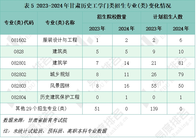 2023年甘肃文科生能报考的工学专业(类)有34个,今年能报考的工学专业仅剩建筑类和服装设计与工程专业,其余的机械类、电子信息类、计算机类等29个专业(类)均取消招生计划,招生专业以及计划人数的大幅减少使得文科生在报考工学专业时面临选择困难。而近年建筑行业不景气,建筑类专业毕业生就业率和薪资待遇也不理想,文科生读完建筑类专业又将面临就业困难。