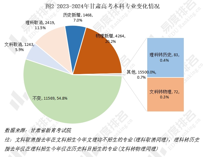 与去年相比超过45.2%的专业发生变化,其中文理科今年取消招生的专业有3662个,而新增招生的专业达到5732个。