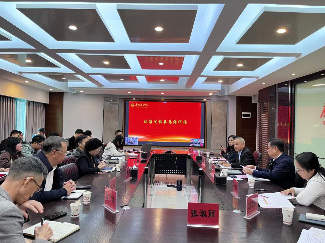 校长刘洁生作总结讲话。刘校指出要深刻认识招生工作的重要意义,招生工作作为学校的生命线,招生规模与招生质量直接影响学校办学质量。因此要注重加强自身建设锤炼,在人才培养、专业建设上下工夫,做好内涵建设,加强一流学科专业建设、同时要重视提升学生满意度、重视品牌宣传,创新宣传方式,挖掘专业特色优势。招生工作要坚持系统观念,全校要上下一心,凝心聚力,做好新一年的招生工作,推动学校高质量发展,奋力谱写新时代高等教育创新发展的华立新篇章。